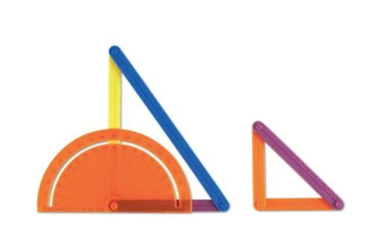 Un material muy recomendable para manipular y visualizar todo lo referido al estudio de los ángulos y su medición. Además se pueden construir diversas figuras geométricas. Contiene 15 cartas de actividades para realizar sobre el tema.