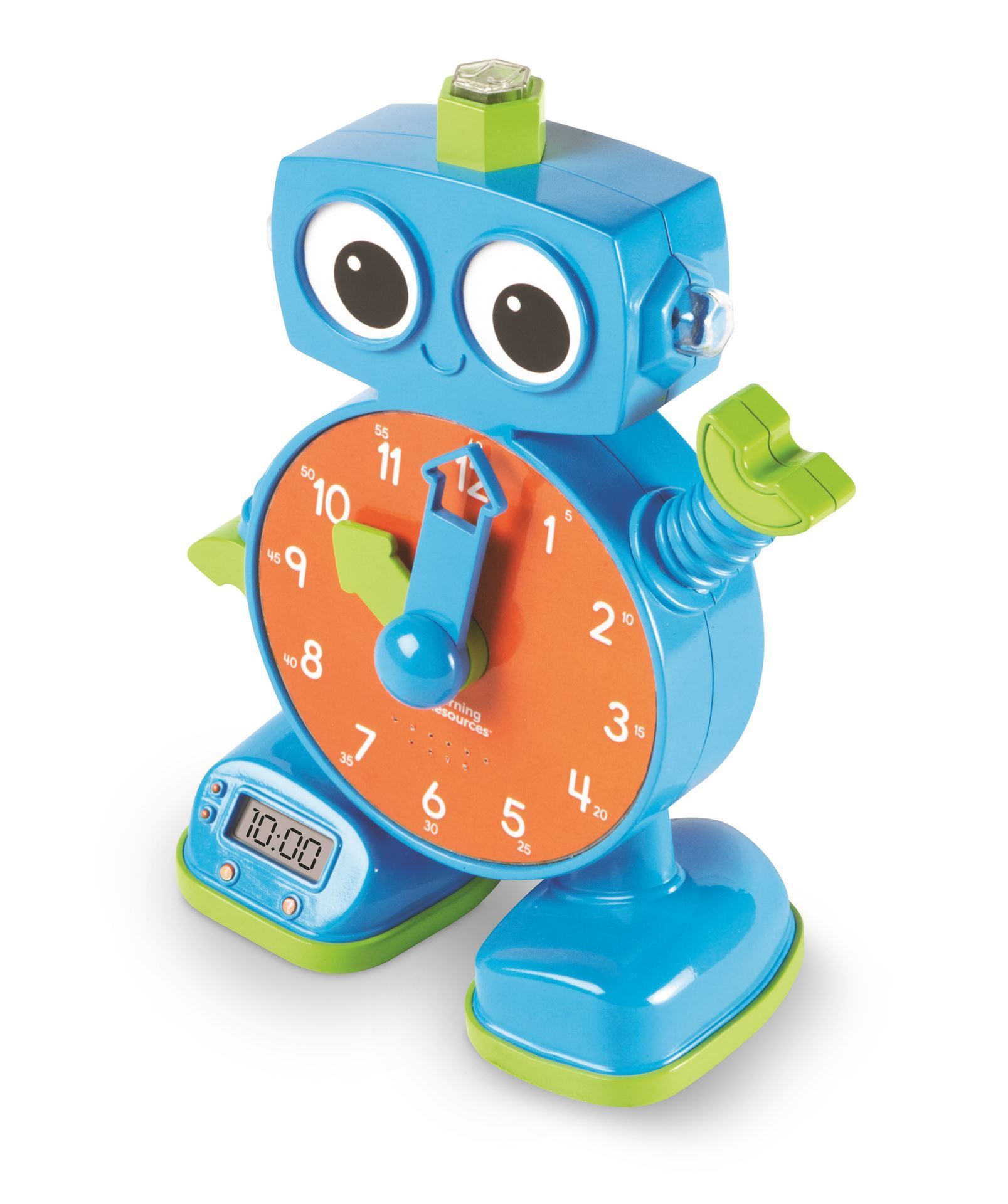¡Despierta! ¡Es hora de aprender! Convierte la lectura de la hora en una fiesta de baile llena de música con Tock the Learning Clock de Learning Resources. Este adorable reloj robot viene con manecillas analógicas de horas y minutos, así como una pantalla digital que funciona como un reloj real. Tock admite dos modos de enseñanza del tiempo: en el modo de diversión musical, Tock recompensa a los niños por configurar correctamente las manecillas de las horas y los minutos al reproducir fragmentos de melodías divertidas y listas para bailar. En el modo de preguntas, Tock les pide a los niños que hagan coincidir las manecillas analógicas con la hora que se muestra en la pantalla digital del reloj, convirtiendo cada minuto que pasa en una posible oportunidad de prueba. Además de enseñar habilidades de tiempo, Tock the Learning Clock también ayuda a los niños a descansar bien por la noche. Tock viene con una función de luz nocturna, así como una luz 'Ok to Wake' que cambia de color cuando está
